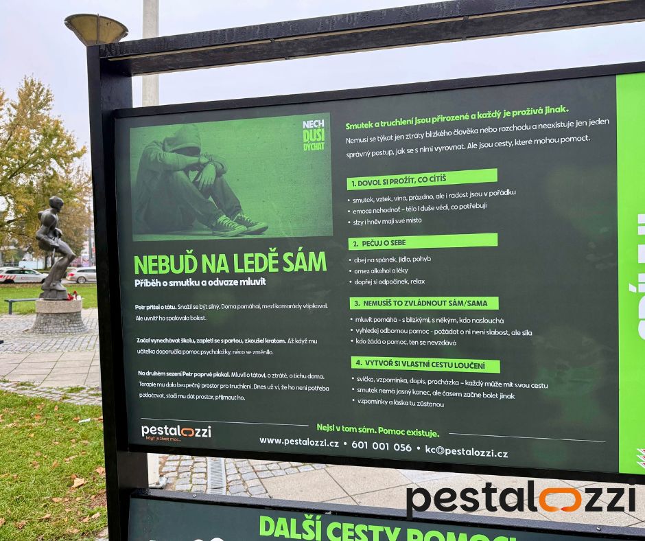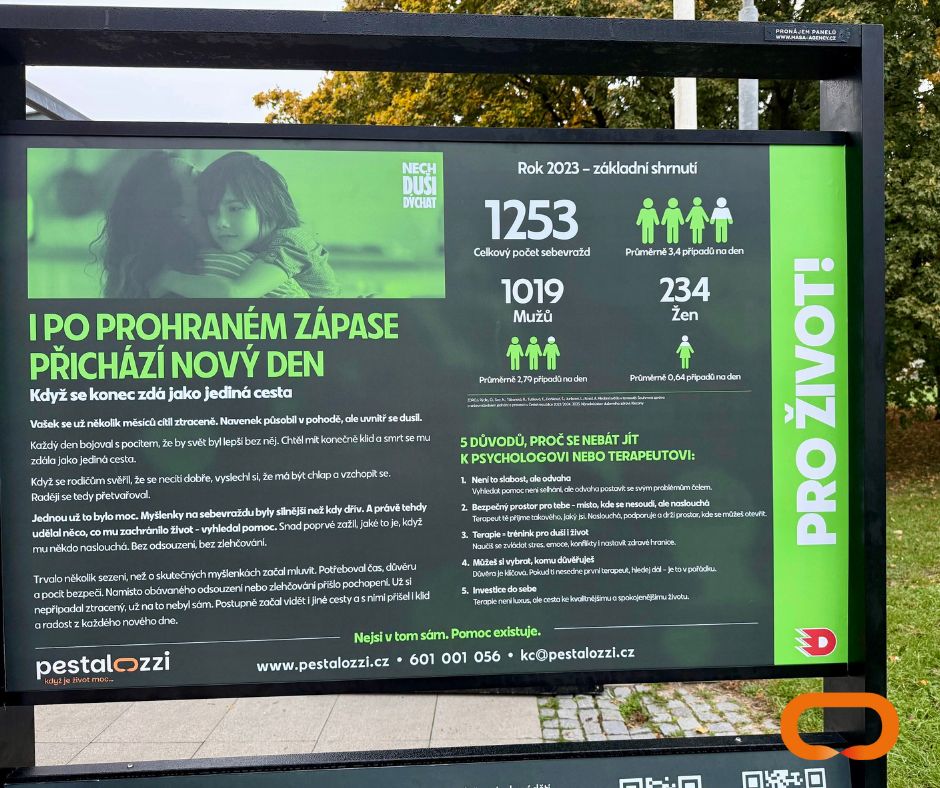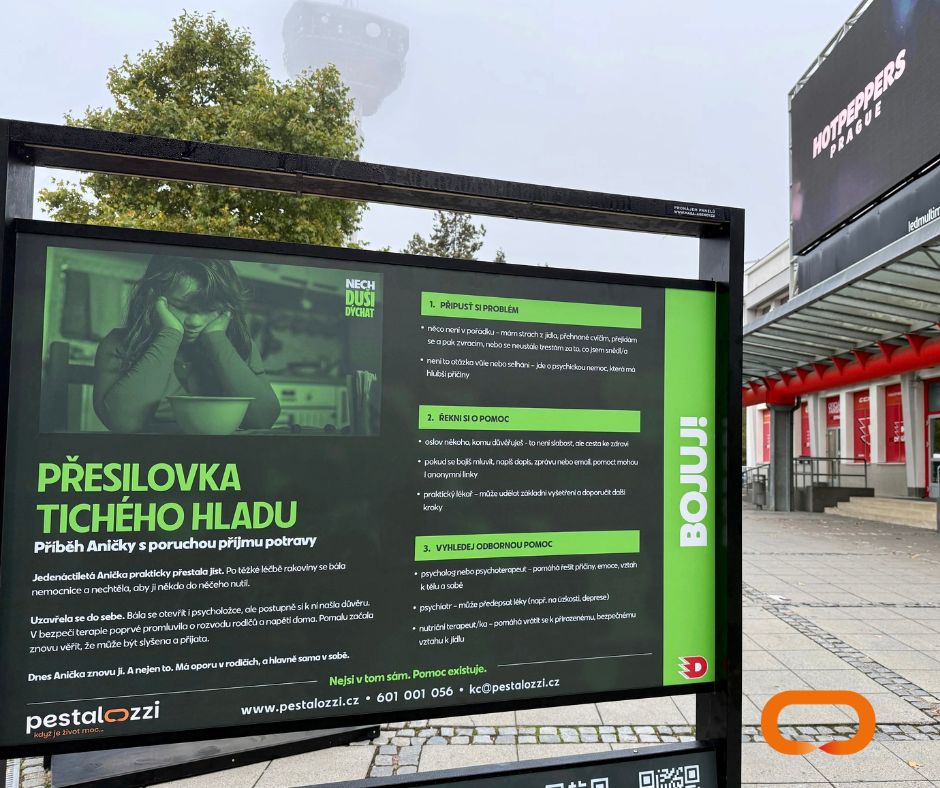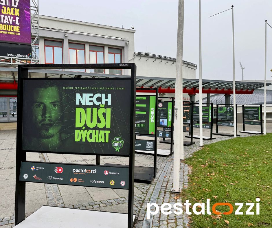 Před Enteria Arenou v Pardubicích jste si možná všimli nové série infopanelů, které mluví o duševním zdraví – o tichém hladu, o ztrátách, o sebepoškozování, o smutku… ale i o naději, odvaze a pomoci. Společně s HC Dynamo Pardubice jsme je vytvořili pro kampaň „Nech duši dýchat“, která upozorňuje na témata, o nichž se často mlčí, a zve lidi k otevřenému rozhovoru o psychickém zdraví.