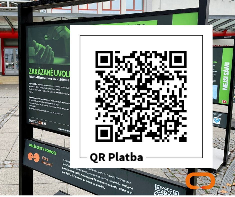 Na posledním panelu najdete QR kód k platbě. Stačí ho naskenovat ve svém mobilním bankovnictví a přispět na terapie. Každá částka pomáhá měnit příběhy těch, kteří zrovna nemají sílu bojovat sami.