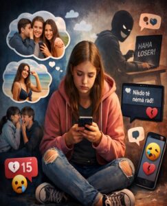 Jedním z hlavních problémů je tlak vrstevníků. Děti mají pocit, že musí být neustále online, reagovat na zprávy, přidávat příspěvky nebo sledovat ostatní. Pokud „nejsou vidět“, mohou mít strach, že vypadnou z kolektivu. Tento tlak je často nenápadný, ale dlouhodobě může vést ke stresu a úzkosti.